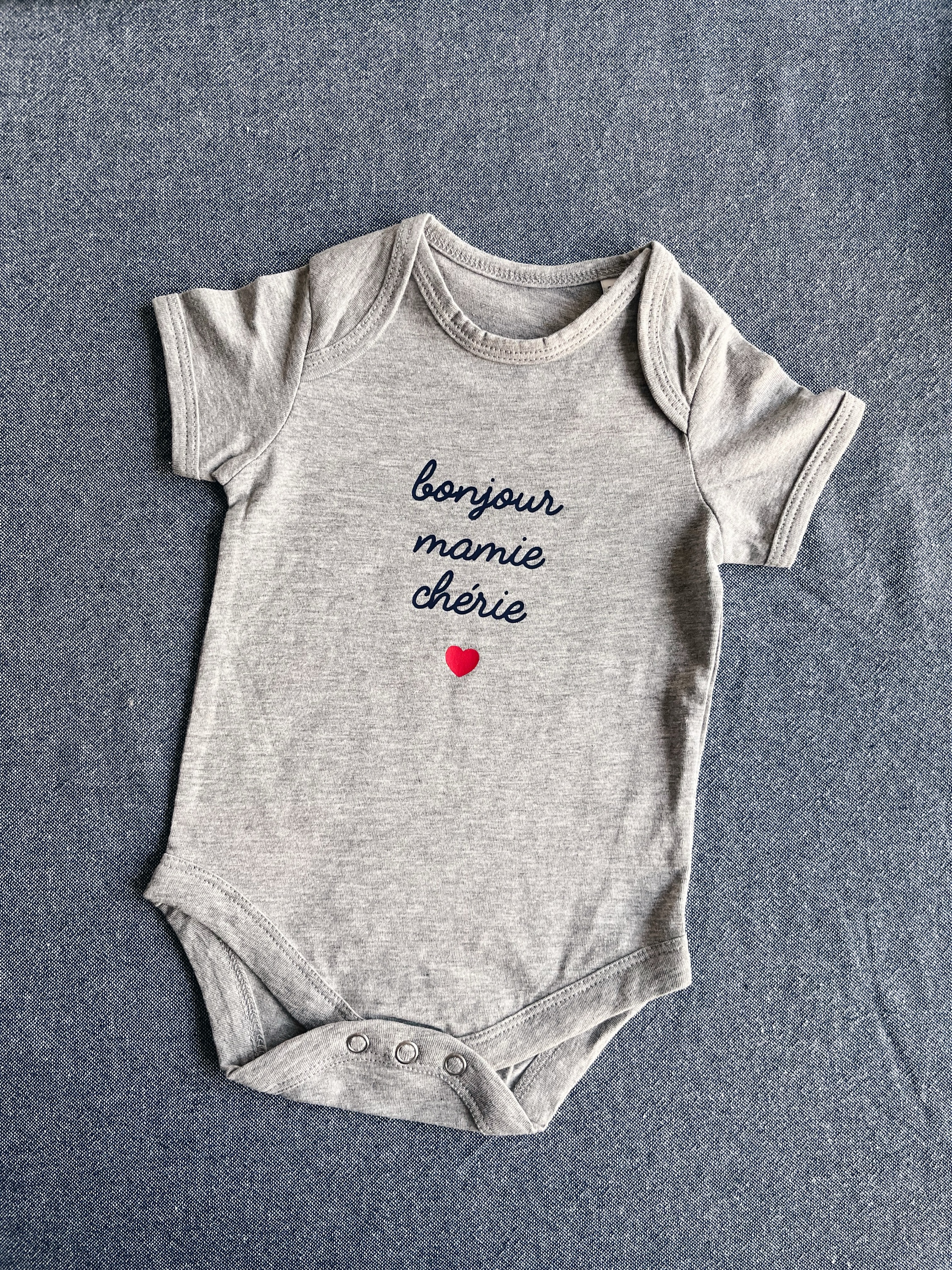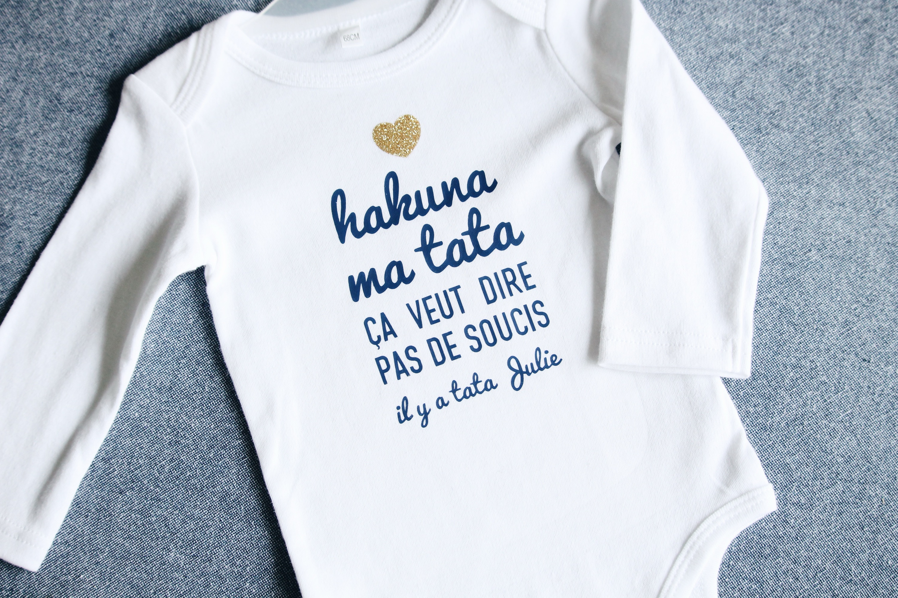 • Ajoutez le sous-texte de votre choix : petit marseillais, petit cœur, bébé parfait, j’aime mon papa, future artiste comme maman, hakuna ma tata Maya etc.