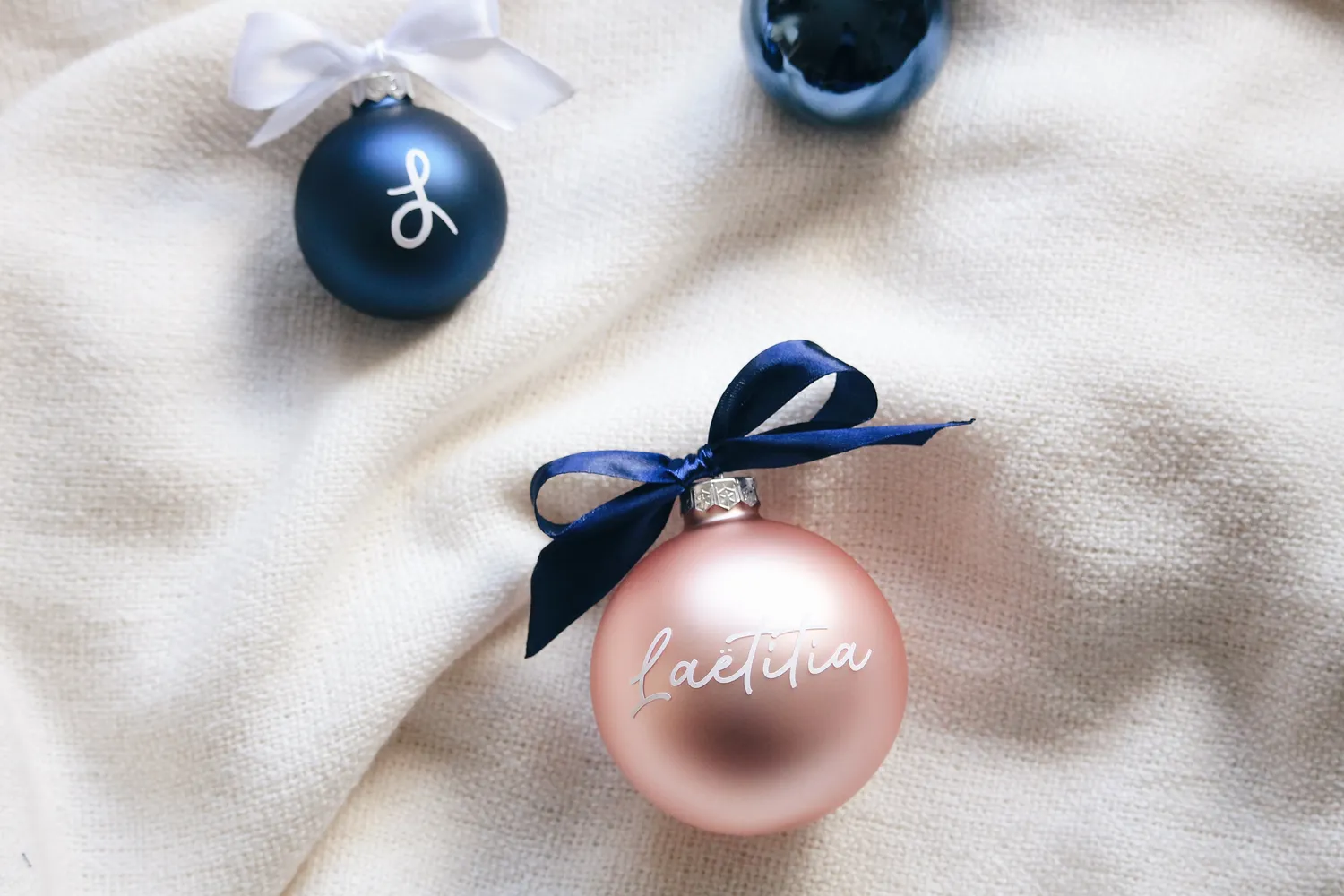 🎨 Choisissez la couleur, le ruban et la taille de votre boule de Noël personnalisée