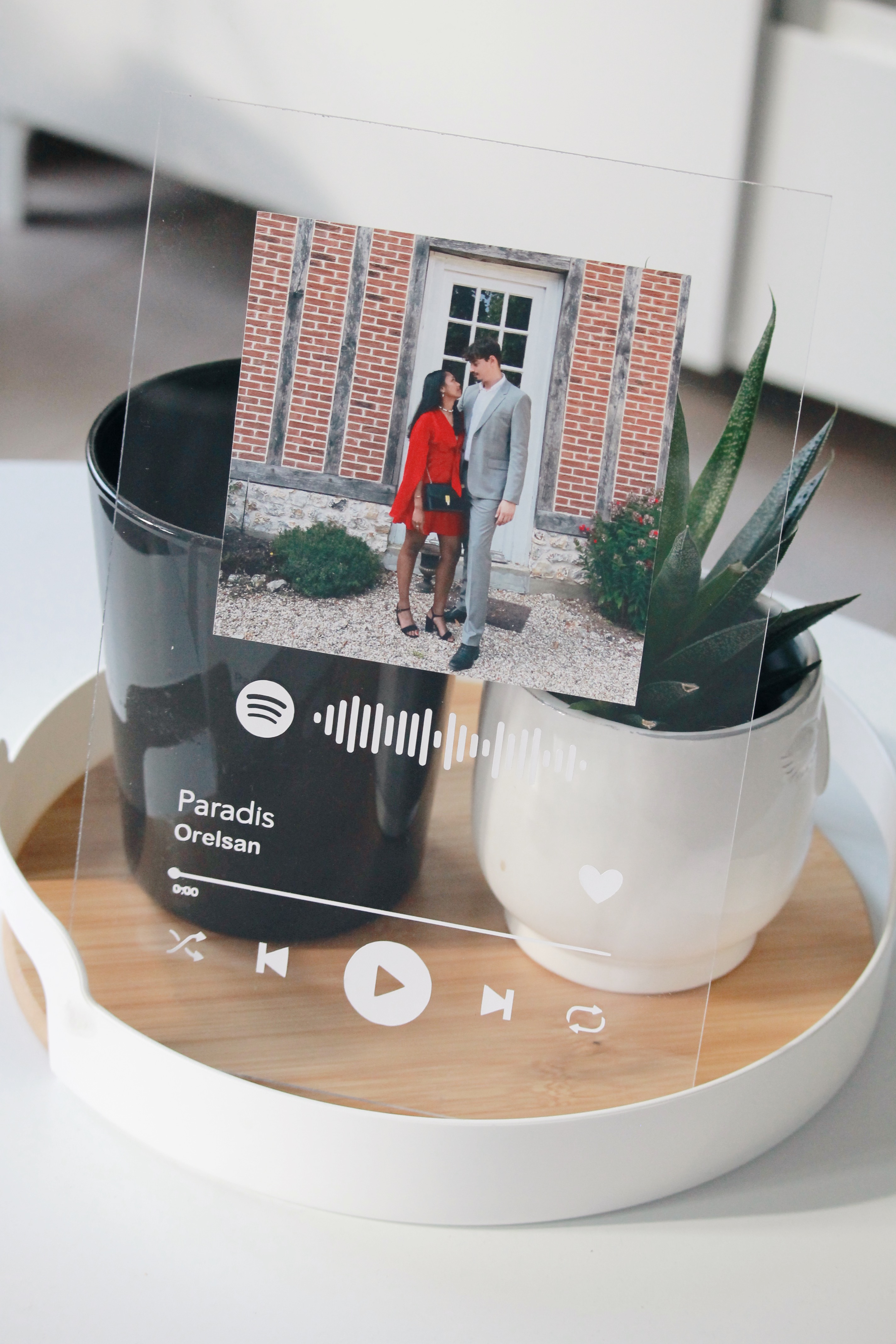 Personnalisant cette plaque Spotify avec une chanson culte et la photo de votre choix. Surprenez vos amis ou votre famille avec un cadeau qui sort de l’ordinaire !